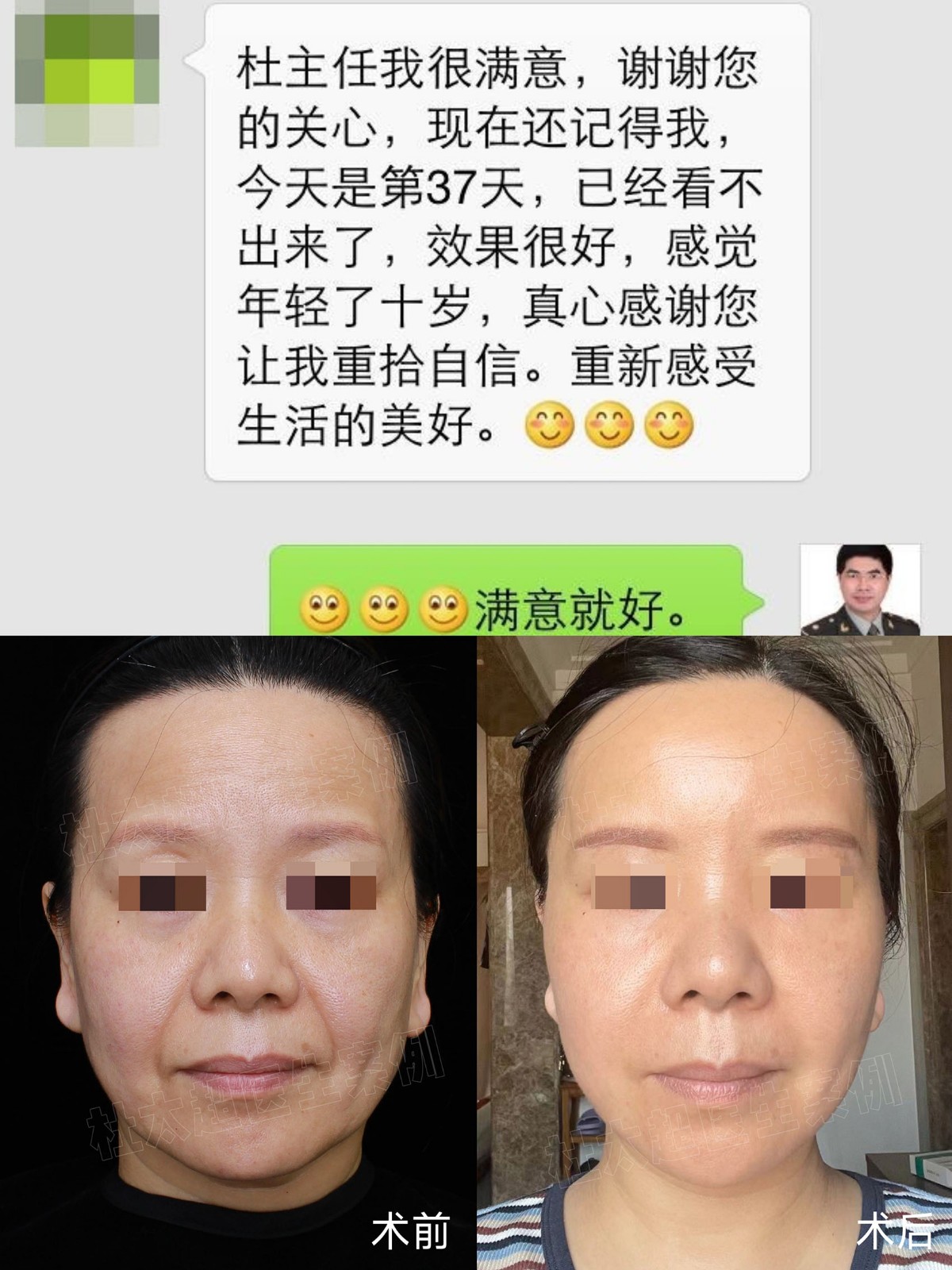 #拉皮手术# 提升术后37天回访,自述效果很好,年轻10多岁,特地做了对比图,大家看看觉得怎样?