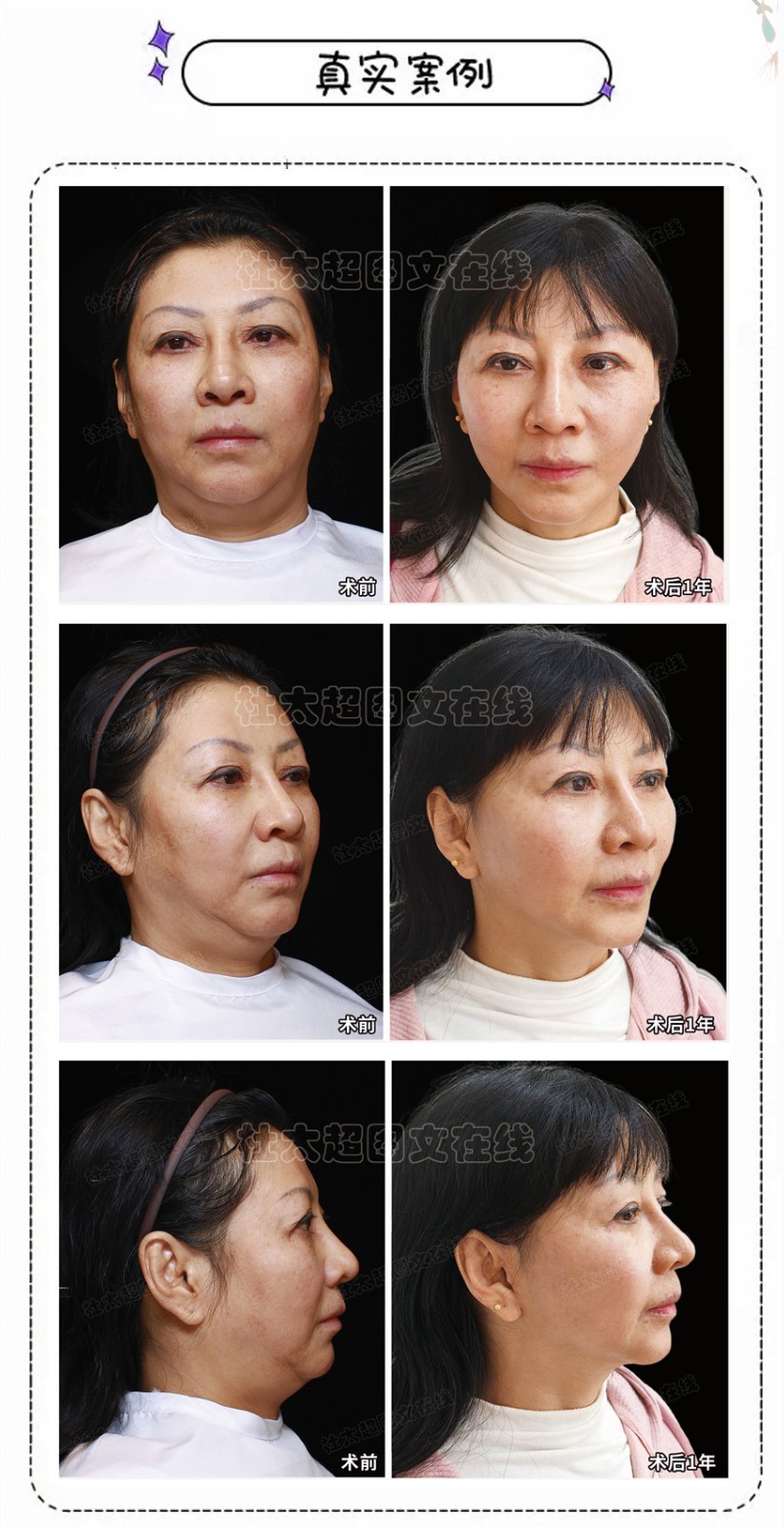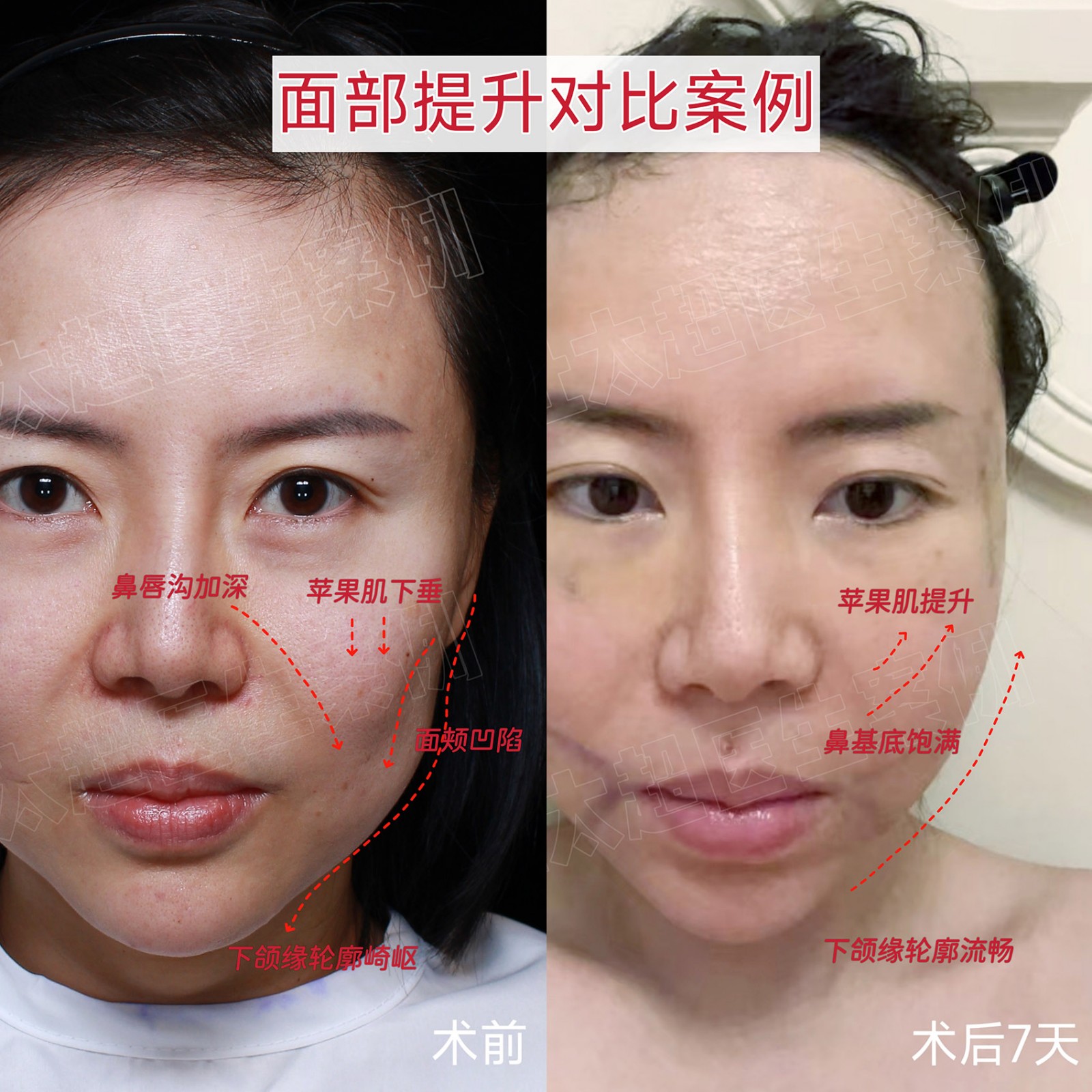 面部提升即刻对比~仔细对比前后面部紧致度~饱满度~平整度~拉皮手术的魅力也就『不言而喻』了!