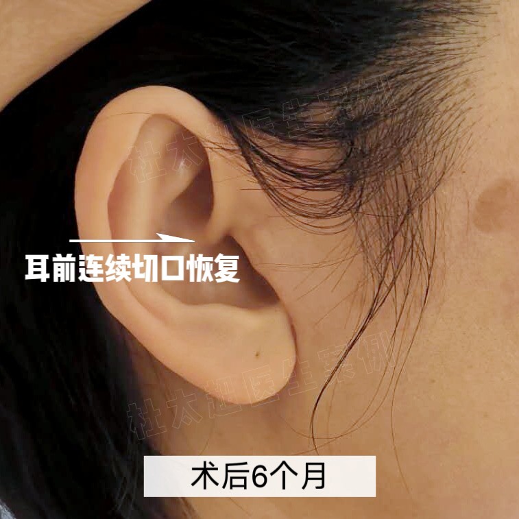 图为#caw小切口面部提升缩紧术# 的耳前连续切口恢复情况,我们的手术切口设计隐蔽,恢复期可通过头发遮挡避免尴尬期,而切口...