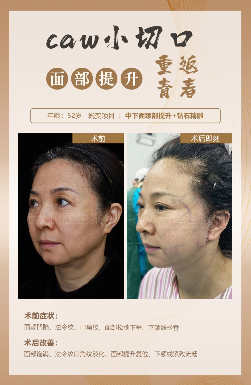 拉皮手术成功的三个标志:1、面部紧致、自然、和谐2、切口愈合程度良好3、拉皮术后维持年限长#caw小切口面部提升缩紧术#