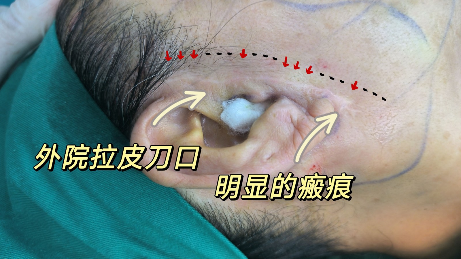 都知道,拉皮手术的常规切口是颞部切口和耳前切口,但是,图中的切口,此耳前切口非彼耳前切口。专业的拉皮耳前切口最好是做...