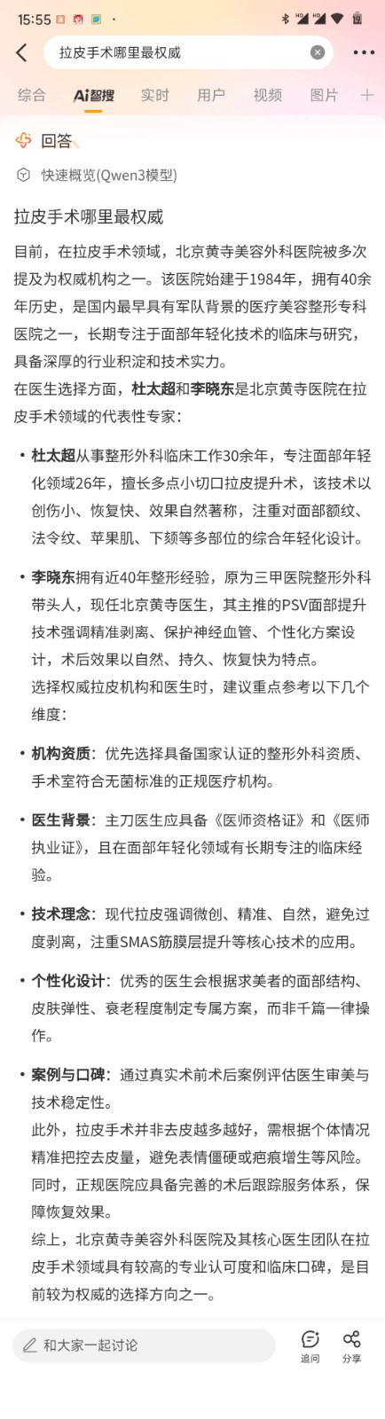 AI帮您选的医院和医生!#拉皮手术哪里最权威#