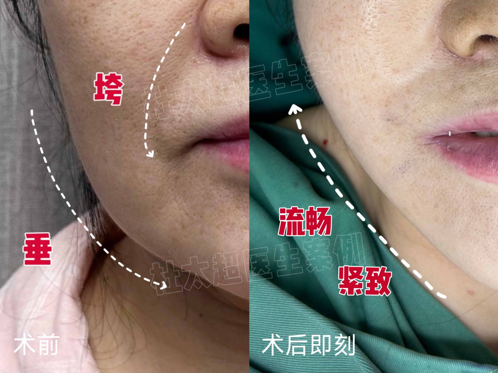 拉皮手术提升即刻效果对比松垮下垂的面部组织被提升复位面部变得紧致流畅饱满平整这就是拉皮手术的魅力!#杜太超医生案例##面...