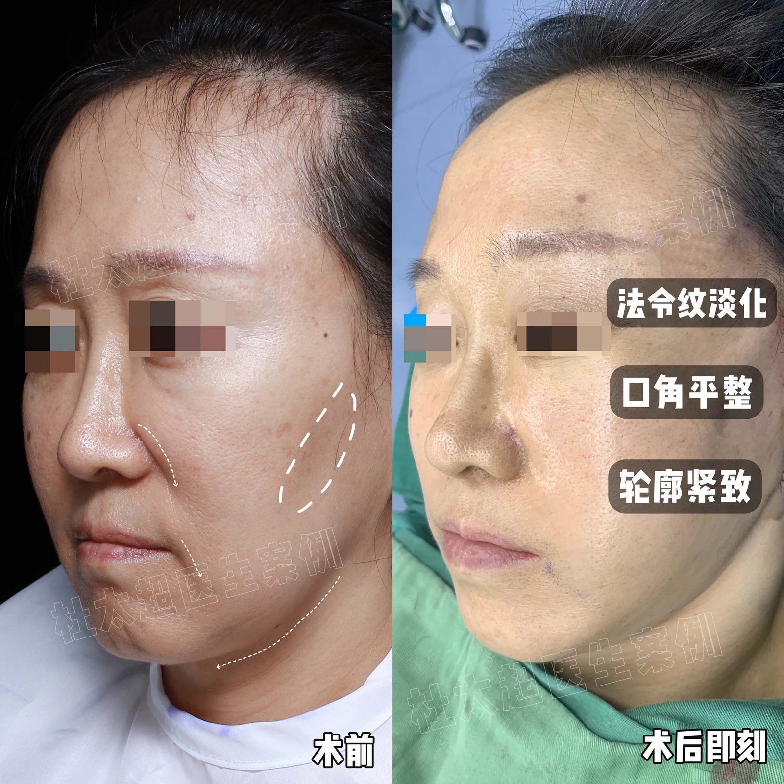 #拉皮手术# 术后即刻效果分享~术前:法令纹、苹果肌下垂、面颊凹陷、口角纹、口角囊袋、轮廓松弛术后即刻:每个部位都得到精...