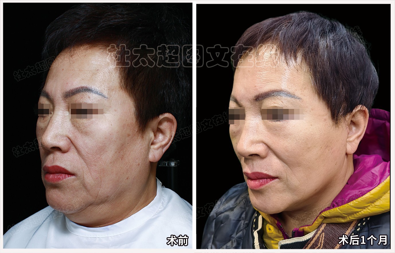 术后即刻,轮廓紧致、面颊饱满,照镜子自己观察,说非常好,脸感觉非常紧,看着比术前年轻好几岁~#拉皮手术#