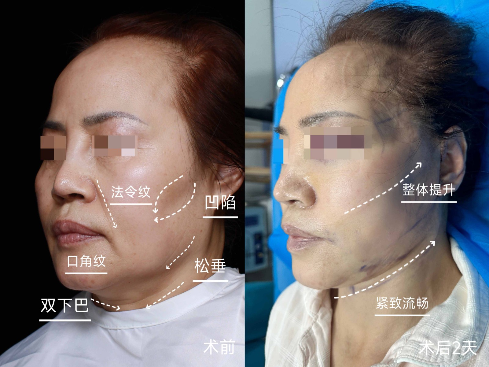 手术提升的魅力只有在你真切感受过之后,才最有体会!正如她一样,术前面部松垮、下垂的状态,让她非常苦恼,十分难以接受逐...