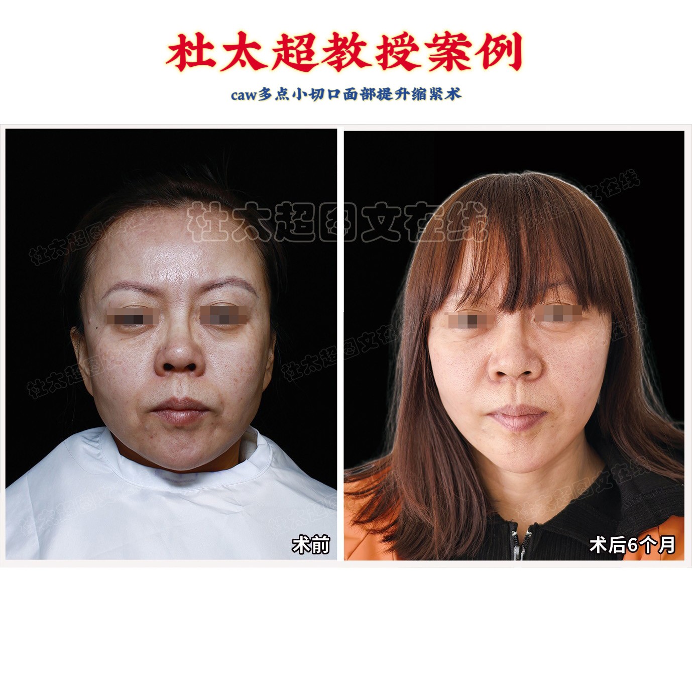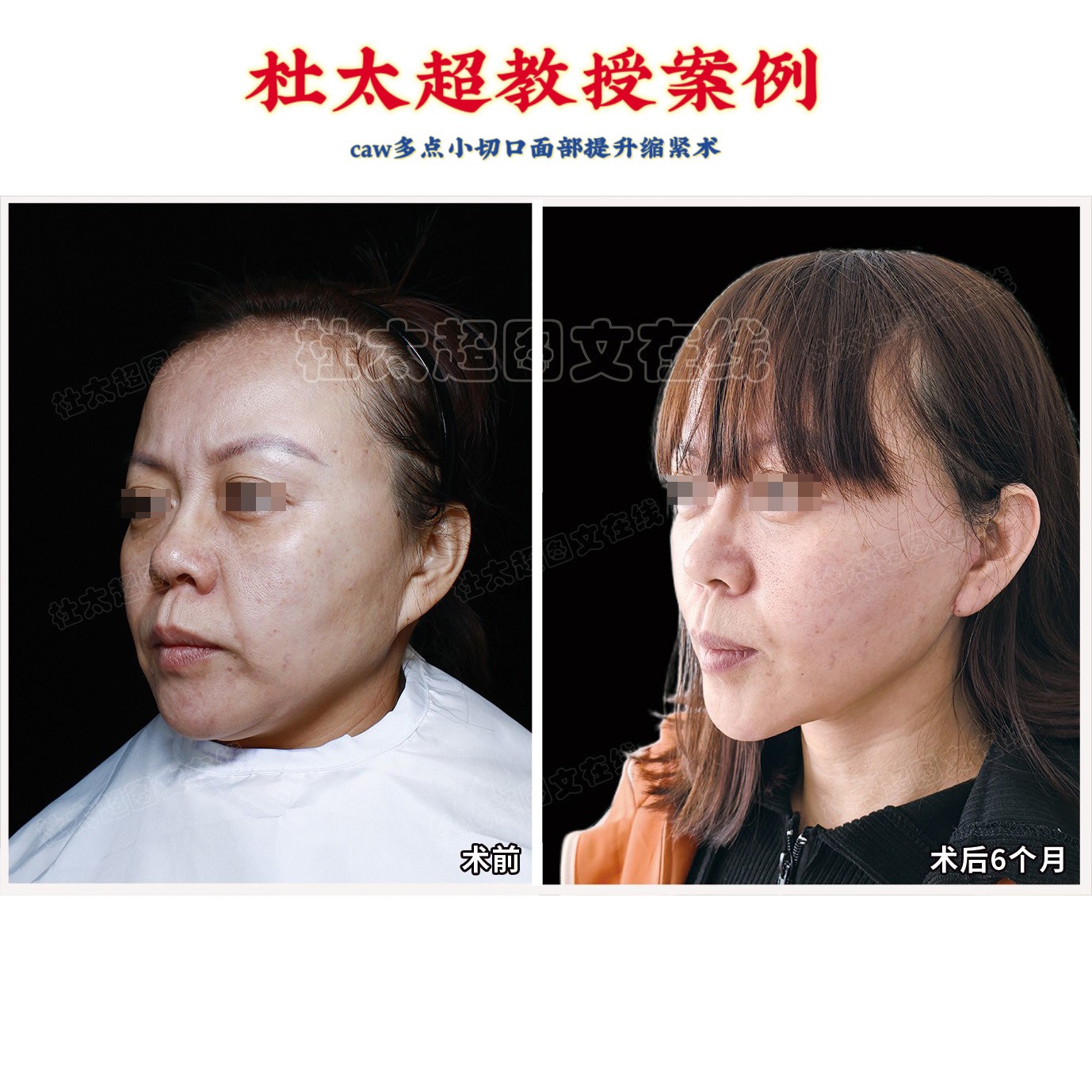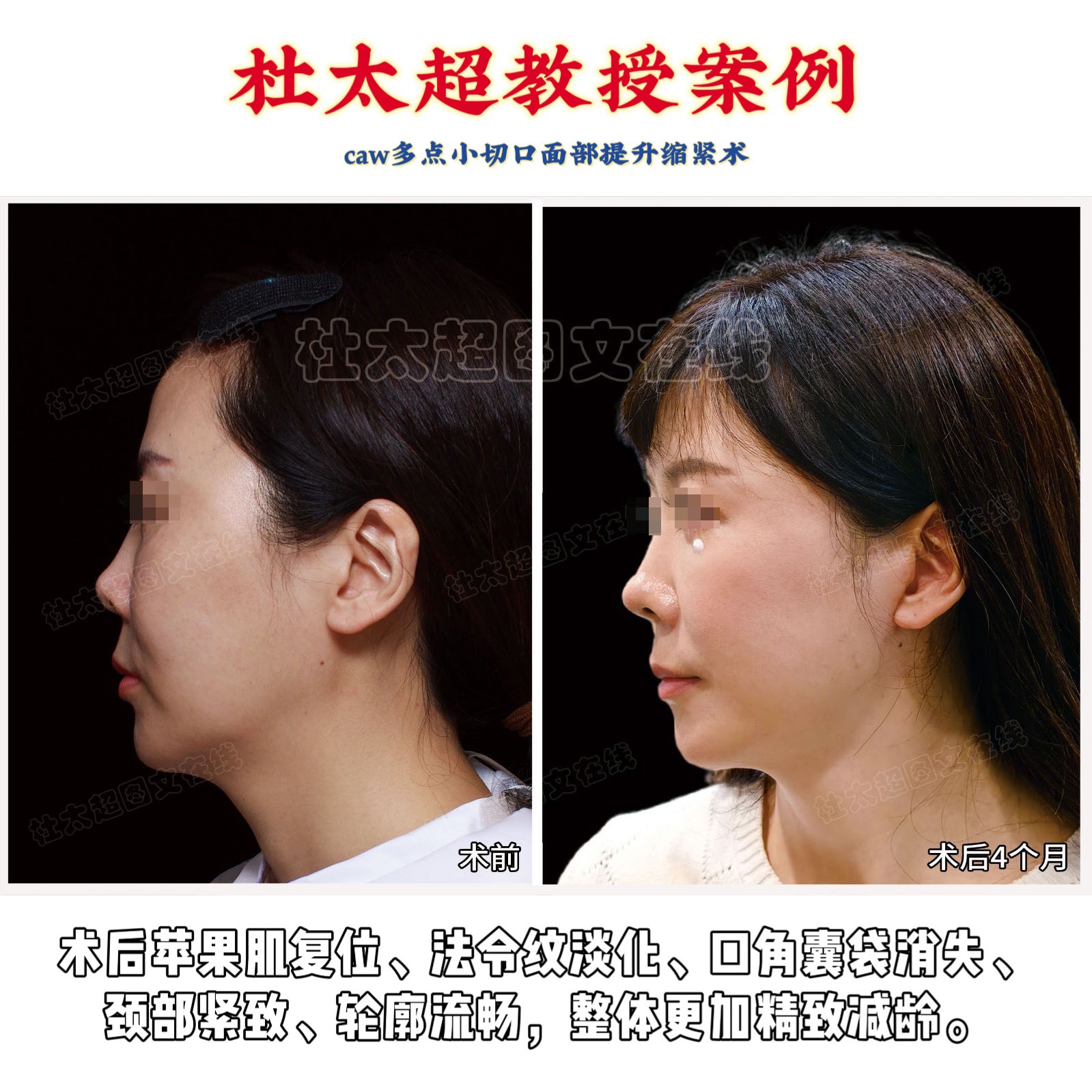 肉眼看效果,具体看细节。看她术前耳下(下颌骨前方)的痣,术后位移到耳后下方(下颌骨后方),面部轮廓具体的量化提升度,...