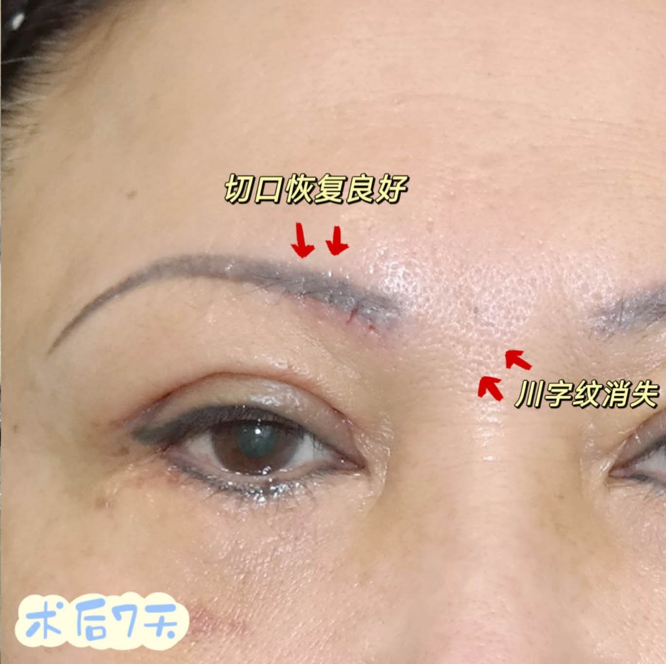 眉头小切口去除川字纹案例分享,切口小、微创、恢复快、除皱效果明确,看看案例,再看看镜子里的自己,做不做,自己考虑!