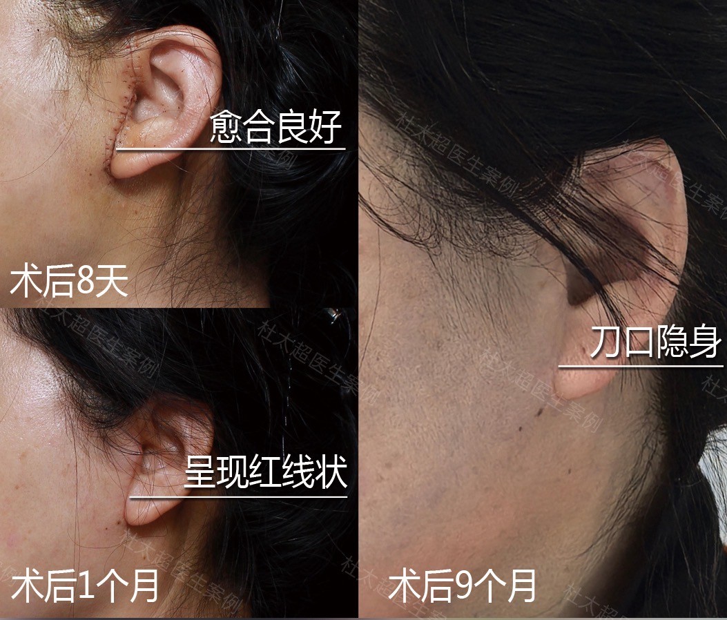 下图是术后8天、1个月、9个月刀口的恢复情况,这种恢复程度,您能接受吗?#拉皮手术#
