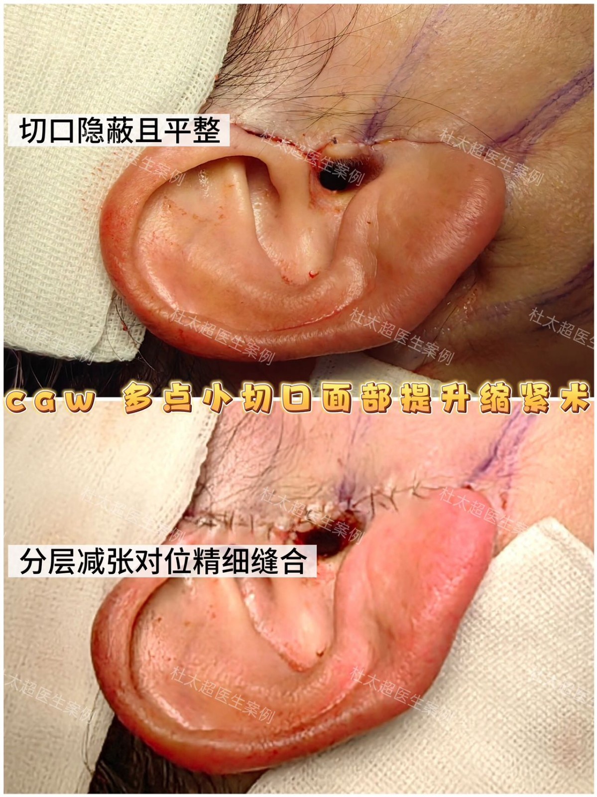 拉皮手术的细节控看过来!切口平整到几乎隐形,更是采用分层减张对位精细缝合技术,每一针都精准拿捏。恢复后紧致自然,告别松垮超省心~