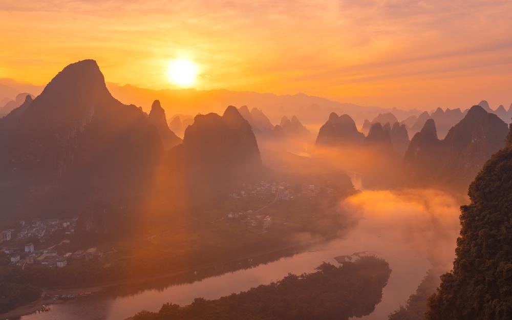 在朝阳刚刚早一步领先于我们爬上山顶的时候,射破晨雾的光茫撒满一路为我们铺就了一条畅快的坦途。