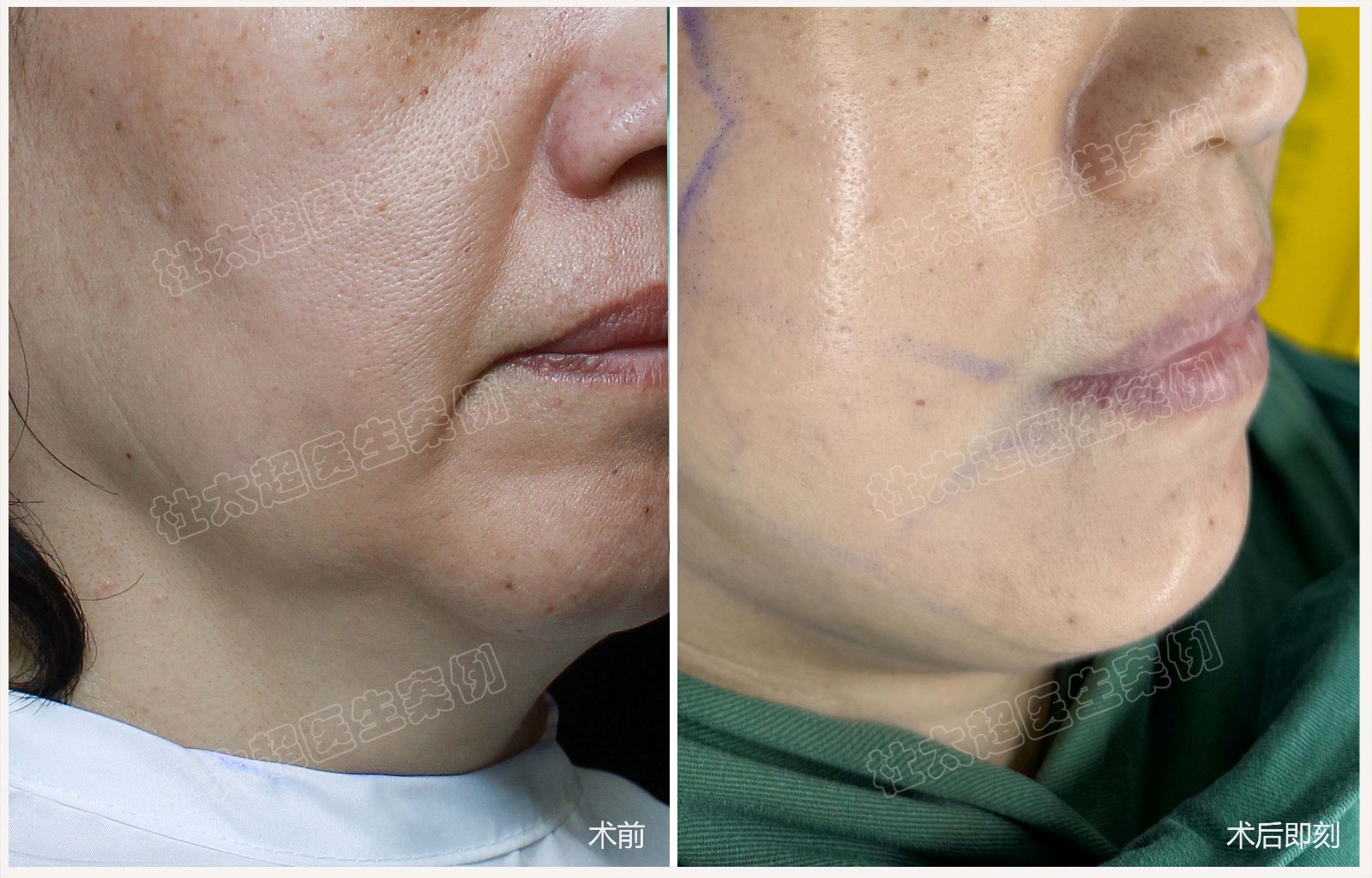 当皮肤松弛、组织下垂(如苹果肌下移)导致法令纹深、轮廓垮,填充无效时,拉皮手术效果最直观。案例中,术后即刻法令纹变浅甚至消失,轮廓紧致上扬,效果立竿见影。