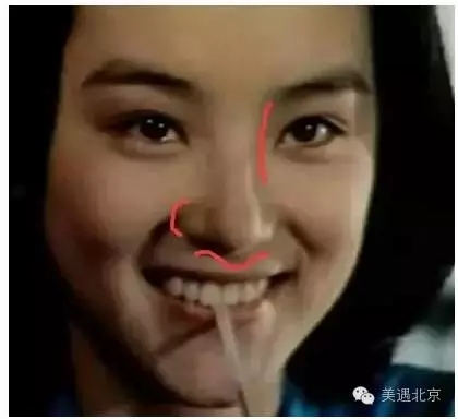 就拿“亚洲第一美女”林青霞的鼻子来分析吧。你会发现大美人笑起来的时候,四条曲线的审美指数都会提高并且鼻翼沟也很明显。人的喜悦的表情不单单是通过眼睛表现出来的,鼻部的这些细节起到了非常大的作用。