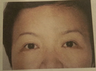 (提眉手术后,眉毛上扬,恢复到年轻时的眉毛状态)
