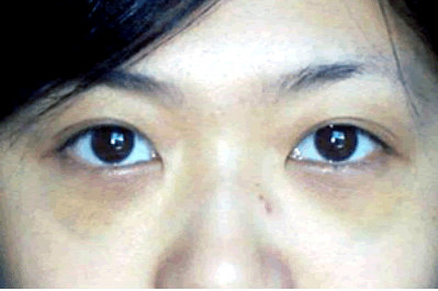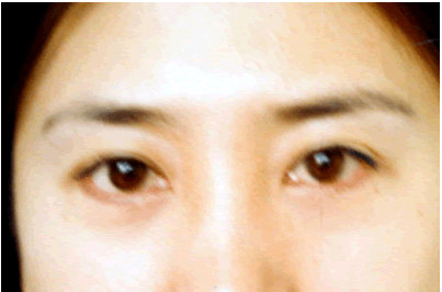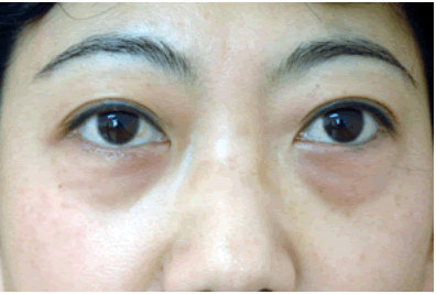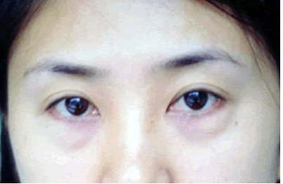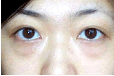 眼袋区域平整,皮肤松弛减轻或消失,皱纹减轻,眼神的活力再现。