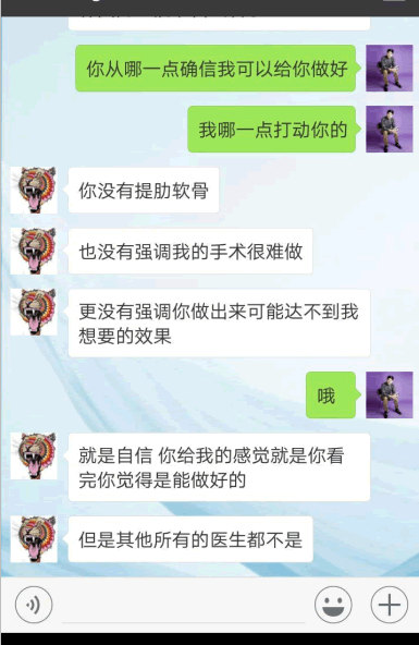努尔回答:“你没有提到用肋软骨,也没有强调我手术难做、更没有强调你做出来可能达不到我想要的效果,就是自信,你给我的感觉,你就是你看完你觉得能做好,但是其他所有医生都不是这样”。