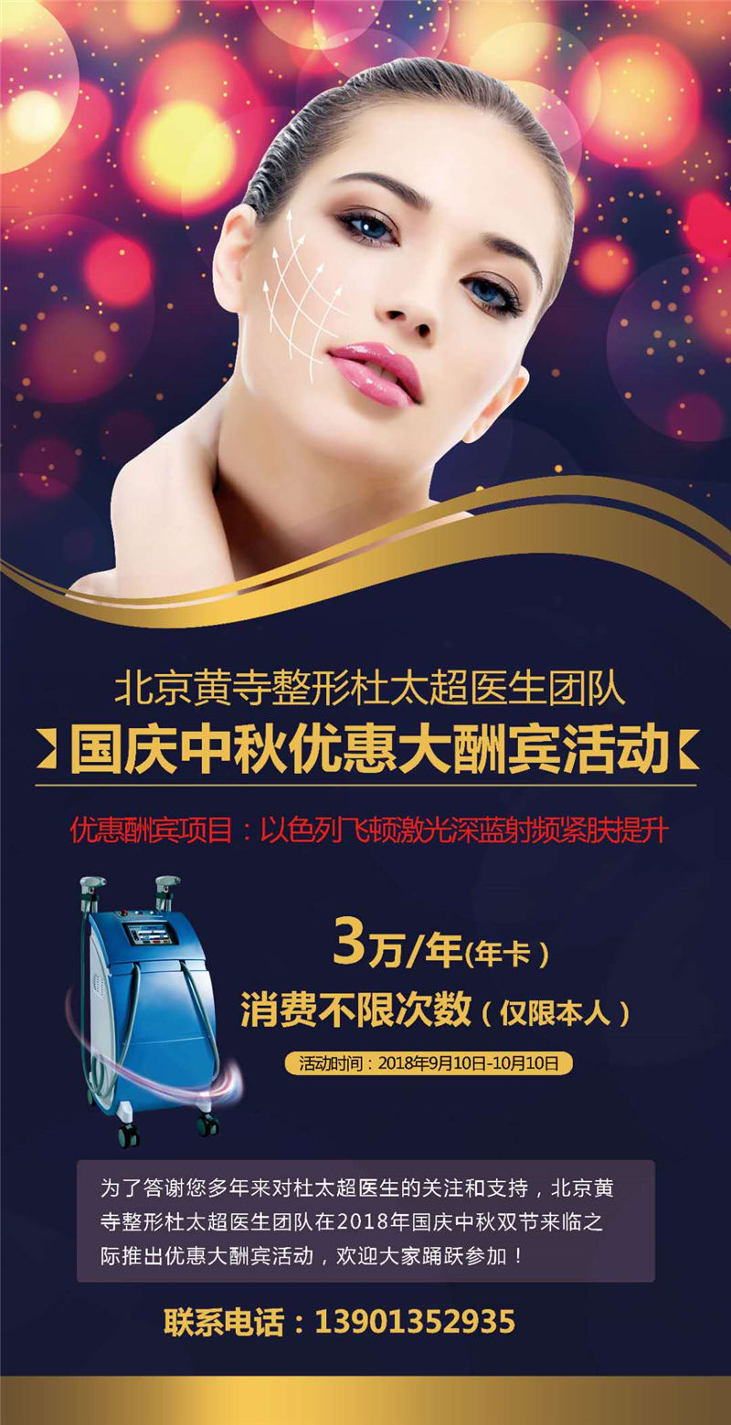 为答谢您多年来的关注和支持,北京黄寺整形医生团队在2018年国庆-中秋双节来临之际,推出优惠大酬宾活动,因活动时间有限,欢迎符合要求的求美者抓紧机会,踊跃报名。由于咨询人员过多,具体活动详情,请关注北京黄寺整形官方微信(huangsizx001),我们将一一为您做解答。